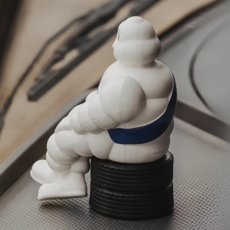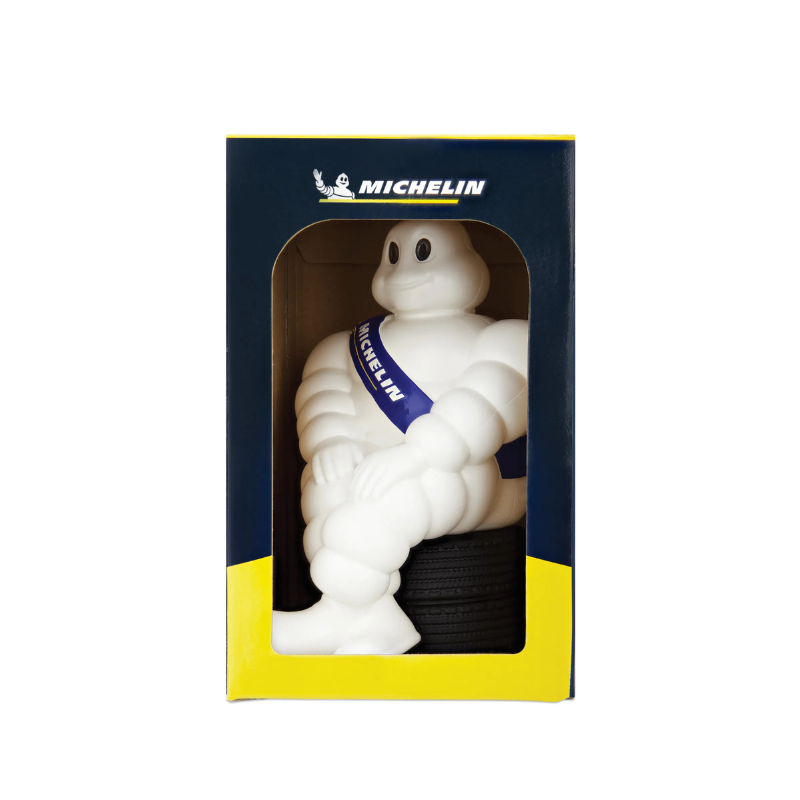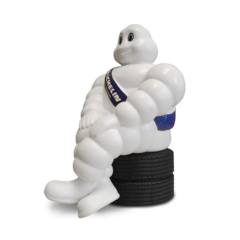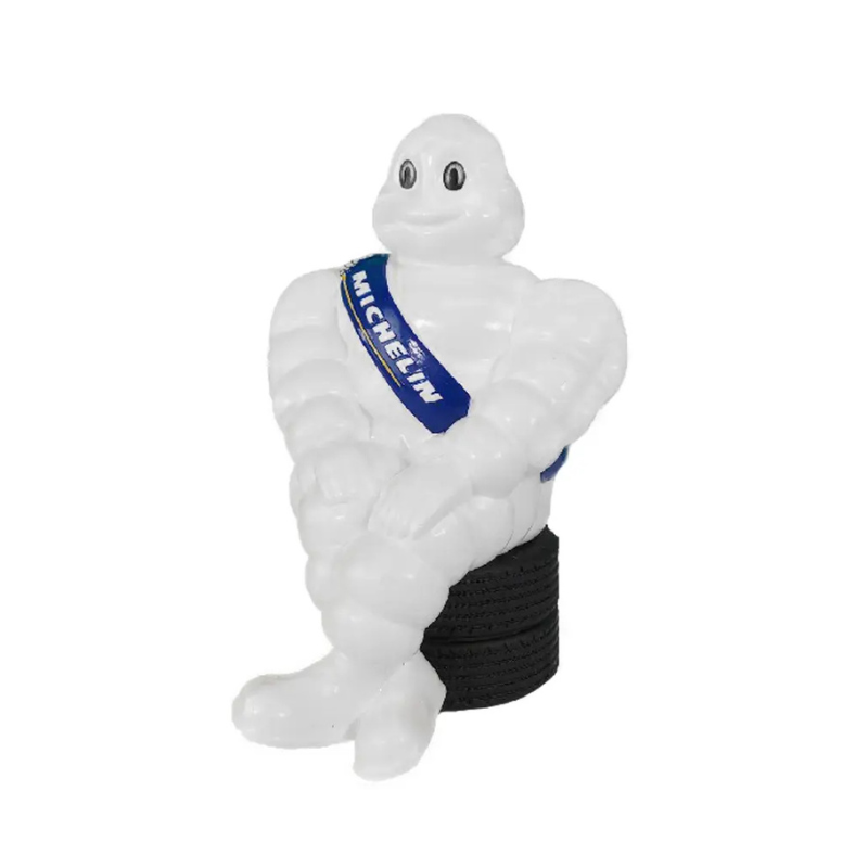 Instantly add a touch of character to your cabin with the oirinal 19cm Michelin Man! This seated Michelin Man is perched on a set of car tires, making it the perfect accessory for your dashboard. Its compact size makes it fit anywhere: in the cabin, on your desk, in the workshop, or simply at home as a stylish decoration. The original version is instantly recognizable by its sleek details and signature white design. An ideal collector's item for any truck enthusiast looking to personalize their interior.