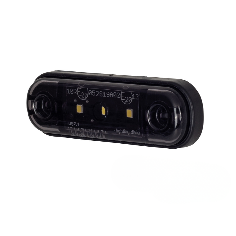 Ben je opzoek naar een markeringslamp die voorzien is van donker glas, maar oplicht in de kleur WIT? Dan is de Strands Dark Knight LED markeringslamp WIT met donker glas wellicht dé LED lamp waarnaar je opzoek bent. De kleine platte opbouw-montage lamp is voorzien van 3 LED punten en word per stuk geleverd. De ovaal gevormde LED lamp is gemaakt voor 12 en 24 volt gebruik en is hierdoor dus bijvoorbeeld geschikt voor je vrachtwagen of trailer. Ook kun je de lamp gebruiken op een auto of aanhanger die voorzien is van een 12-volt aansluiting.